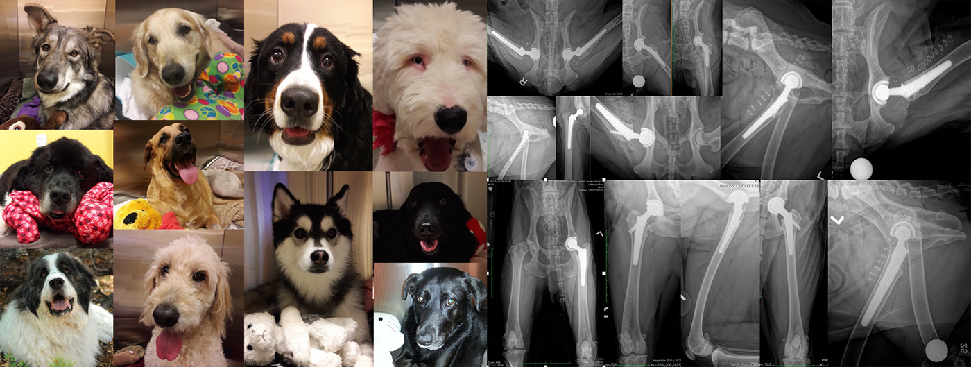 These happy faces are some of the many dogs that have had successful total hip replacement at Arizona Canine Orthopedics. The images on the right are the corresponding implants for each of the dogs!